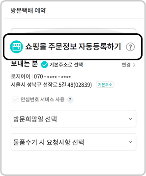 1. “쇼핑몰 주문정보 자동 등록하기” 선택